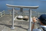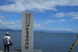 砂浜には、朝鮮昼顔の可愛い群れがあり、街道を彷彿とさす松並木も有り、竹浮島詣でが盛んであった頃、島まで渡れない人が拝んだと、いう二つ石があり、ミニ鳥居もあり、今もこのあたりからは、お賽銭として、投げた銅貨が多く、湖底から出るという。今津港には琵琶湖就航歌歌碑があり又記念館もある。