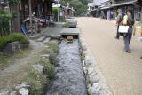 町が時代の波に取り残されたのが良かったのか,旧宿場町には古い建物が多く残っており、文化庁の重要伝統的建造物群保存地区に選定されている。熊川の町並みの特徴は、街道に面して平入り・妻入りなどが混在し、多様な形式の建物が建ち並んでいるこれら旧趣を残す建物を生かした資料館や、さまざまな店が建ち並び、近世に戻った感覚です。街道に面した家にはそれぞれに川〈前川〉を利用した、『かわと』と呼ばれる水利場がある、なんとも懐かしい風景です。