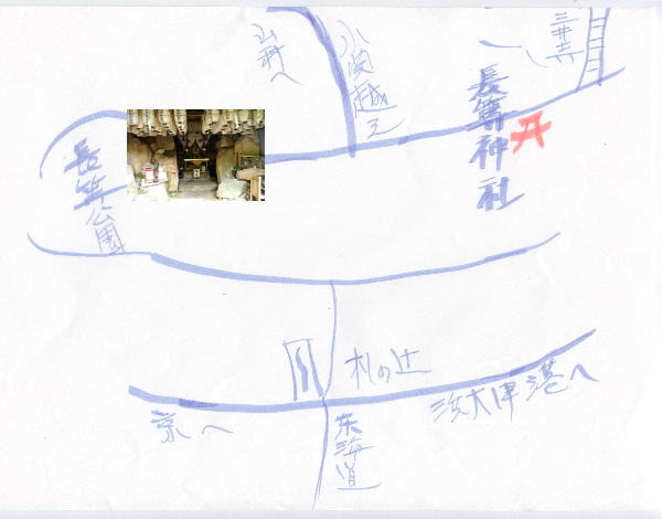 街道筋の目立つ場所に、 さまざまな情報を掲げた掲示板<高札>が立てられた交差点という意味で、 この札の辻で南北に通じるのが東海道( 京街道 )で、西へ折れて三井寺方面へ向かうのが西近江路です。