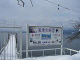 二日前の大雪でここは一メートルの積雪で、歩くのは無理ということで、タクシーで海津大崎まで行く。幹道は除雪されていて誰もいない大崎は、琵琶湖の青を前にいちめんの雪景色はまさに夢の世界である。