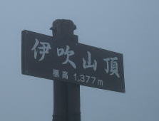 山頂はすっぽりと、霧につつまれている。本当に何も見えない。若い頃、伊吹山は夏山の前の足慣らしでよく歩いた山だが・・残念・・でも少しでも花に出会えるか?と歩く。日本名百山の一つで滋賀県最高峰(1377メートル)で、琵琶湖はもちろん福井、岐阜、三重県方面と360度のパノラマが広がる。晴れていれば素晴らしい展望だが・・