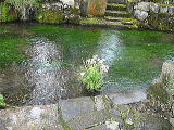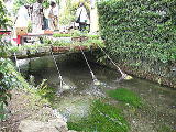 バスを降りれば、なんと懐かしい風景・小さなお宮さんがあり、鳥居がありその前を川が流れ、水温14℃前後の清流にしか生息しない梅花藻が茂り、たくさんの魚が泳いでいる。