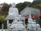 山の上には、インドから贈られたという、天竺渡来大観音石像と天竺渡来大涅槃石像が祀られている。