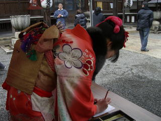 京はたいへんな人出で、法輪寺まで二時間もかかる。女の子は皆振袖で、ほんとに可愛い。大人になるのは、女の子が早いらし。