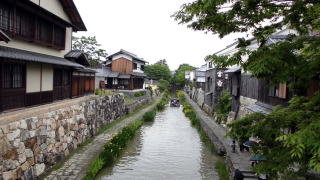 八幡堀りは天正13年(1585年)に豊臣秀次(秀吉の甥)が八幡山に城を築き開町したことにはじまります。秀次は、八幡堀と琵琶湖とを繋ぎ、湖上を往来する船を城下内に寄港させることで、人、物、情報を集め、さらに楽市楽座制を実施することで城下を活気ずけた