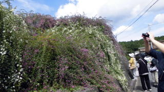 歴史都市近江八幡を巡り、初夏の花と緑を愛でる・というテーマで、雨の中いってきました。八幡掘り巡りの遊覧舟(屋形舟)に乗り、両岸を黄色に染めるキショウブを中心に、モッコウバラ・・タイム・フジ
