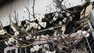 テラスの向こうに白梅紅梅が見事に花を咲かせます。もうすぐ春が来ると、桃のピンクが膨らんでくるのを眺めながらのコーヒータイムは至福のひとときです。