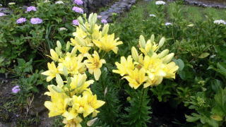 山では樹が大きくなり高いところで見事な花を咲かせているギボシですが、山好き、花好きの方がさしめをしてくださり、見事な花が咲きました。花言葉は「出会い」だそうです。
