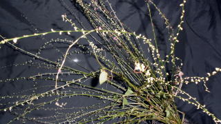 ● タデ科の多年草で山野の日陰で生える、白い花を銀水引・紅白混じりを御所水引という。
