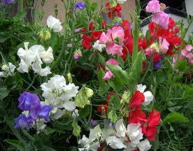 春らしい赤・白・ピンク・青など、明るい色彩の蝶形花を咲かせる一年草。