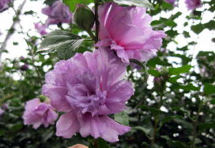 ● アオイ科の落葉低木で、花は一日花で白花の八重咲き、花の色が変化する品種がある。