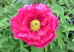 落葉性の低木で、花軸10〜20センチほどの見事なはなをさかせます。花色は紅色・白・ピンク・黄色など、大きな花びらが幾重にも重なって、まり状にまとまった姿は風格がただよい〈牡丹,華之富貴ナル者也】 と古来より称賛されてきました。花言葉もこれから来たものです。中国では王花、花神、富貴花の別称もあり、宋代の洛陽では花といえばぼたんを意味したほど、特別の存在だった。日本では深見草・二十日草という別名がありましたが、いまではほとんど用いられません。