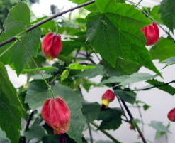 つる性の多年草 で、支柱にからみつきながら伸びていきます。秋から冬にかけて咲く花はやや角ばった筒状で、あざやかな赤色。英名のファイアークラッカとは爆竹 のことで、からまりあったつるのあちこちで赤い花が咲くようすは、パチパチと爆竹が炸裂するさまを彷彿とさせます。イタリアの植物園園長だったマネッティという人物から、この花名がついたといわれてます