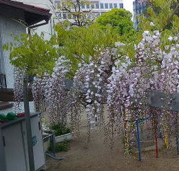 マメ科のつる性落葉植物,原産地ー日本,中国,北アメリカ花期は5ー6月とありますが,温暖化の為?4月なのに満開です。